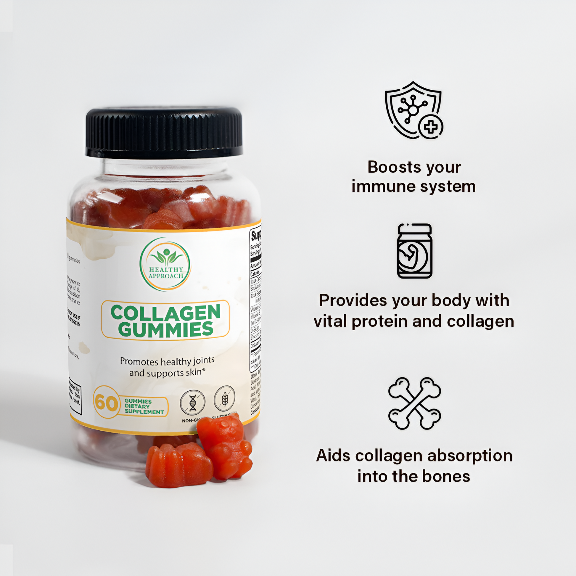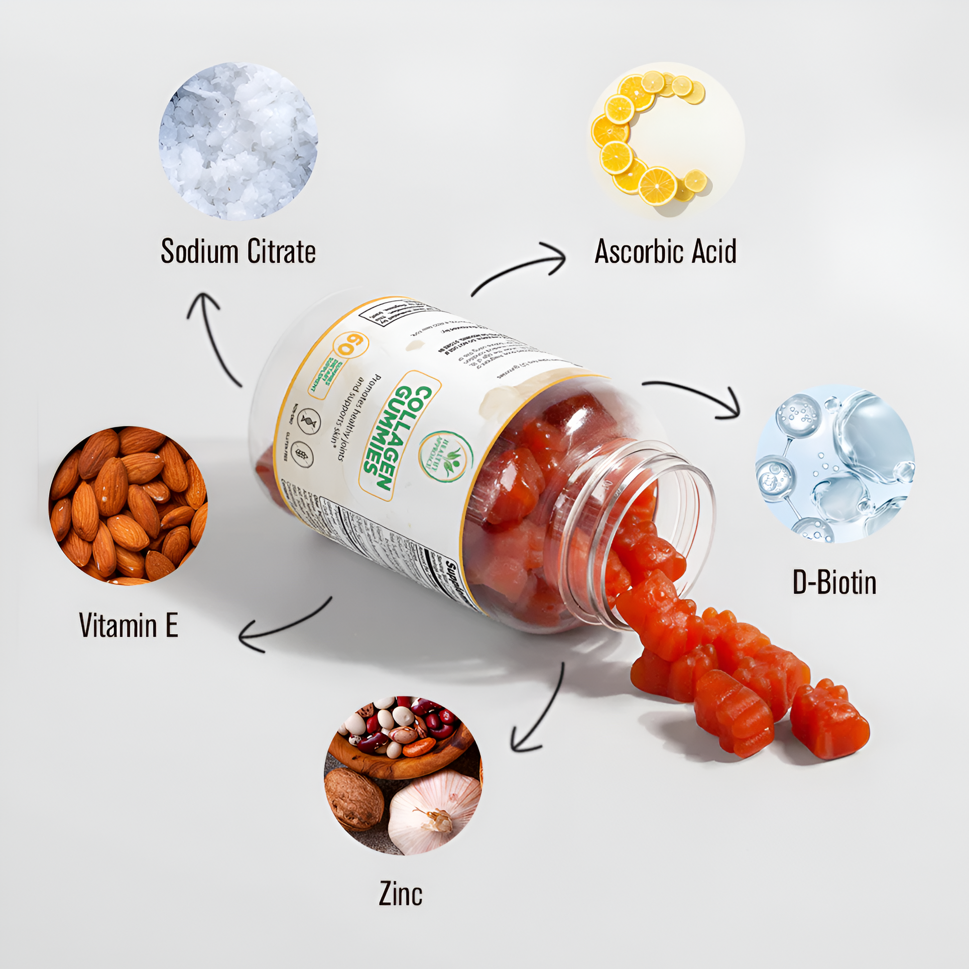 Collagen Gummies are for those looking for healthy sweet snacks. These are the perfect replacement for traditional sugar gummies on the market since they provide your body with vital protein and collagen while also boosting your immune system with Vitamin C.