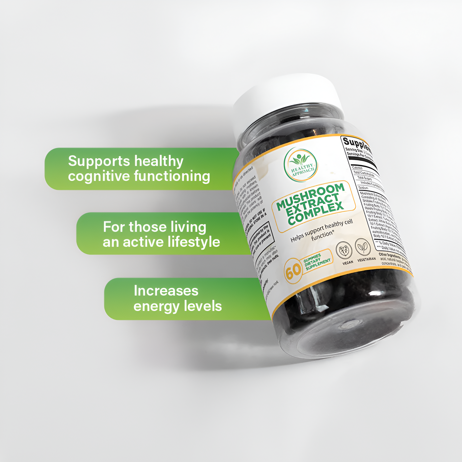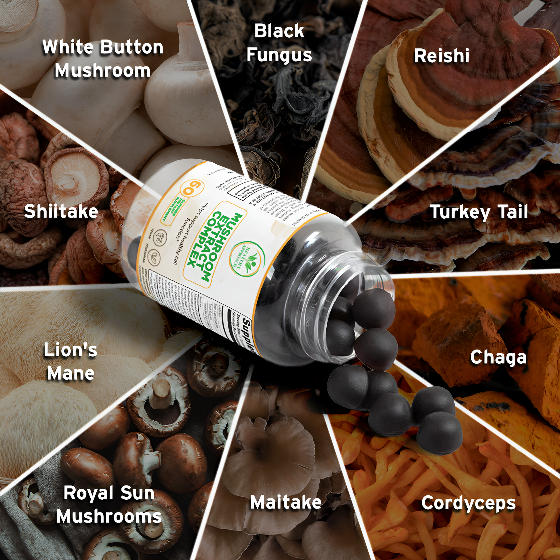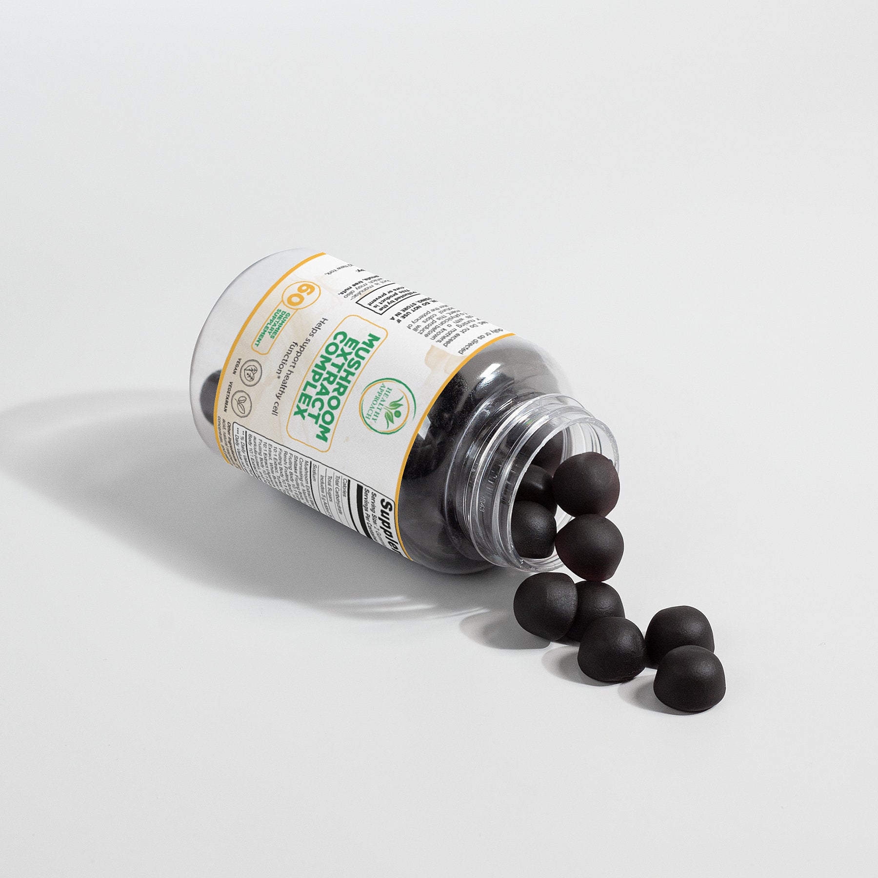 Our Mushroom Extract Complex Gummies combine the most sought-after mushrooms in the world: Maitake, Shiitake, Lion's Mane, Reishi, Cordyceps, Chaga, Turkey Tail, White Button Mushroom, Black Fungus, and Royal Sun Mushrooms.